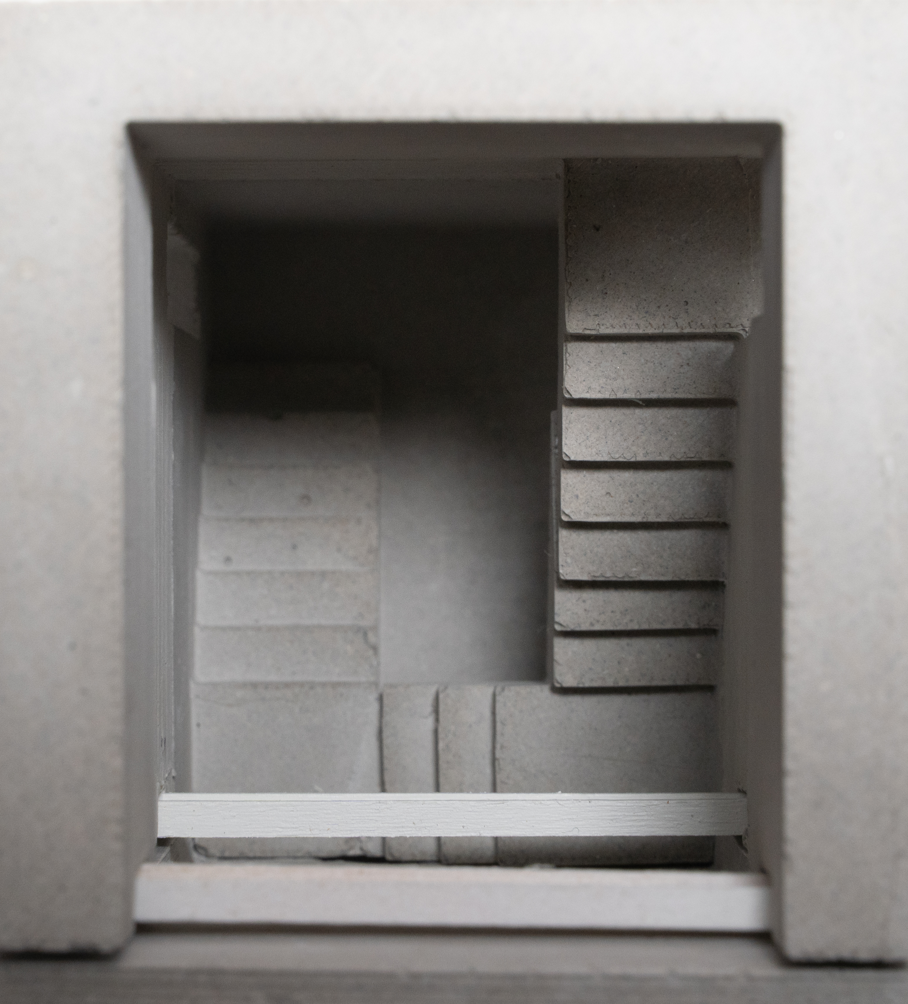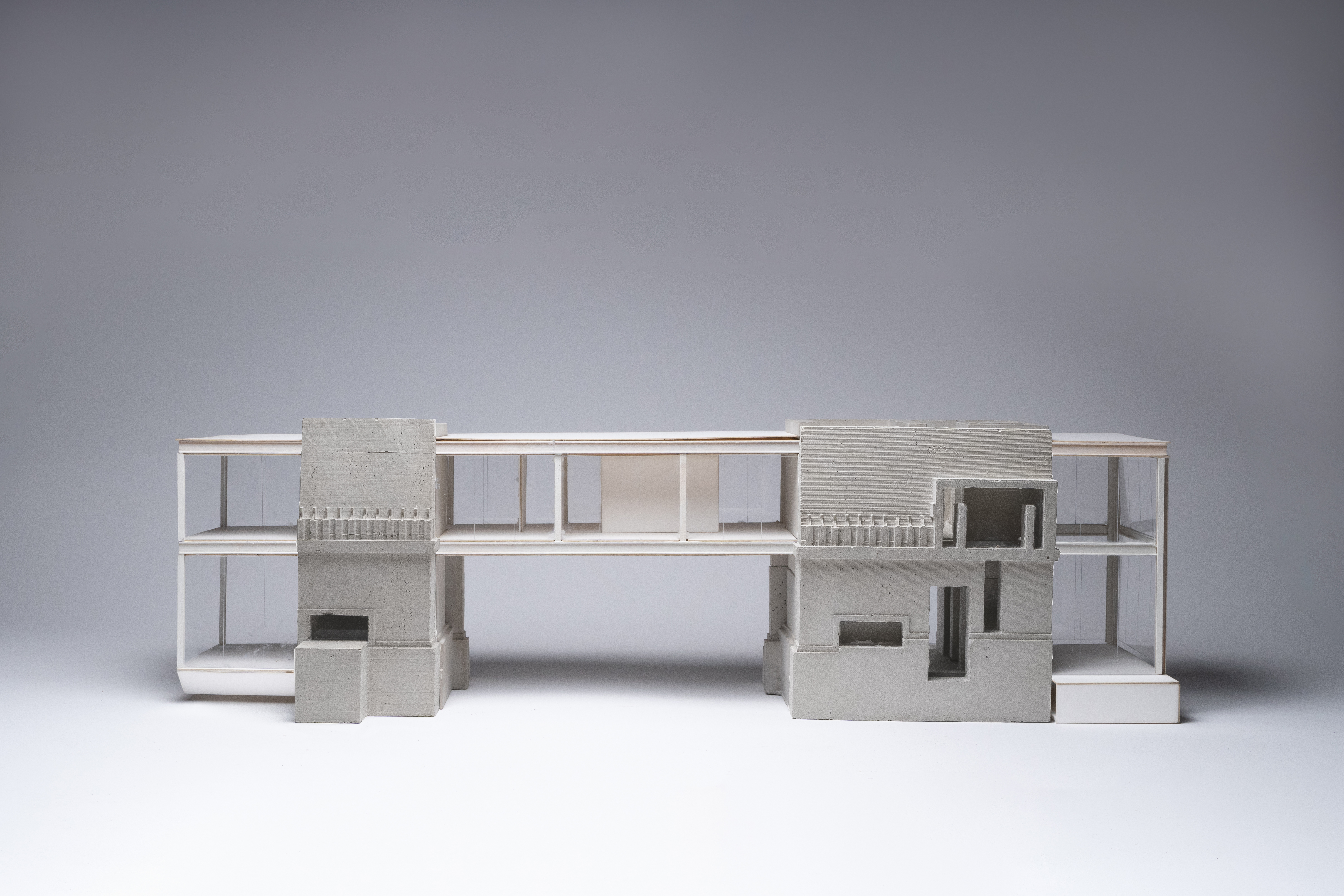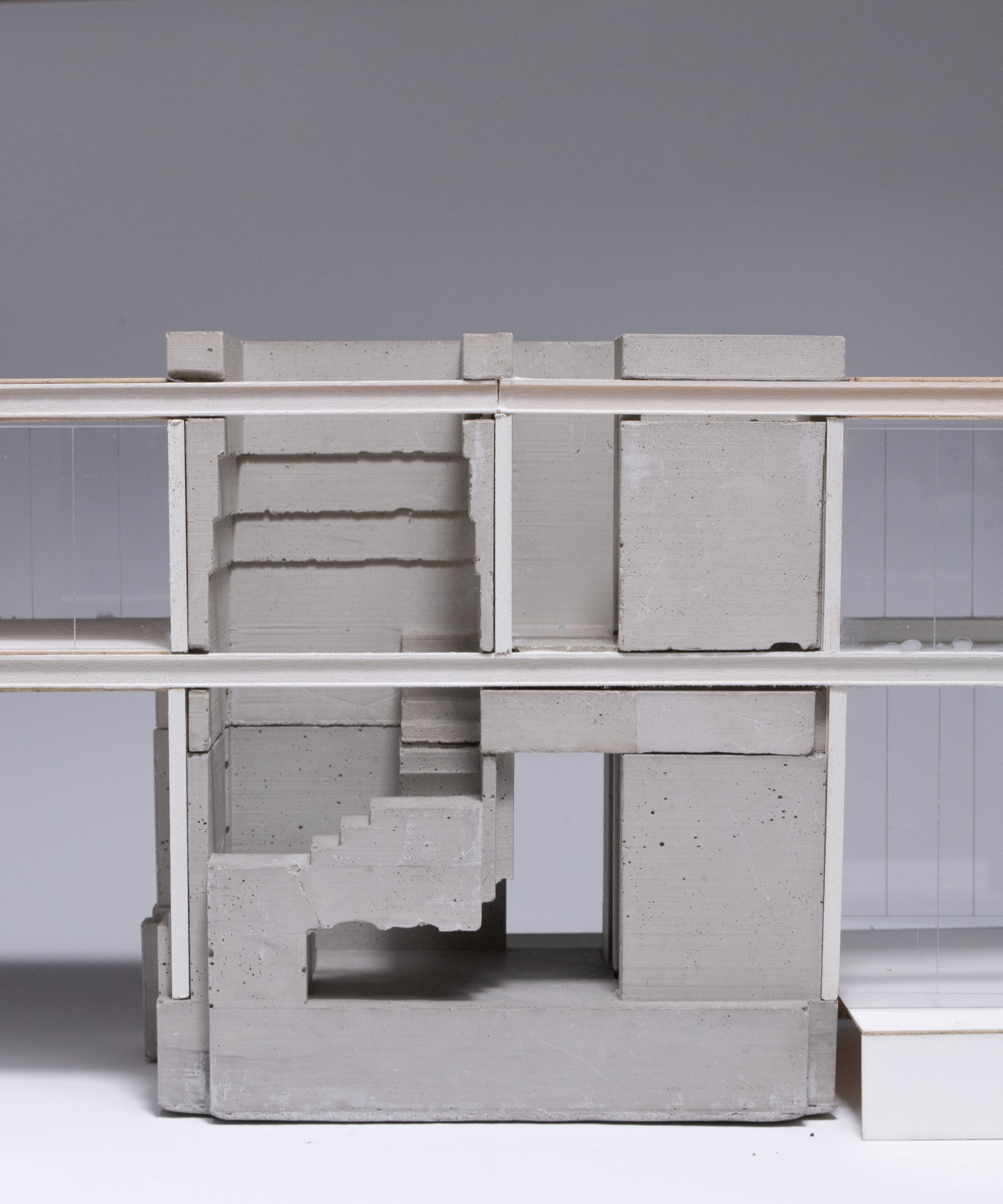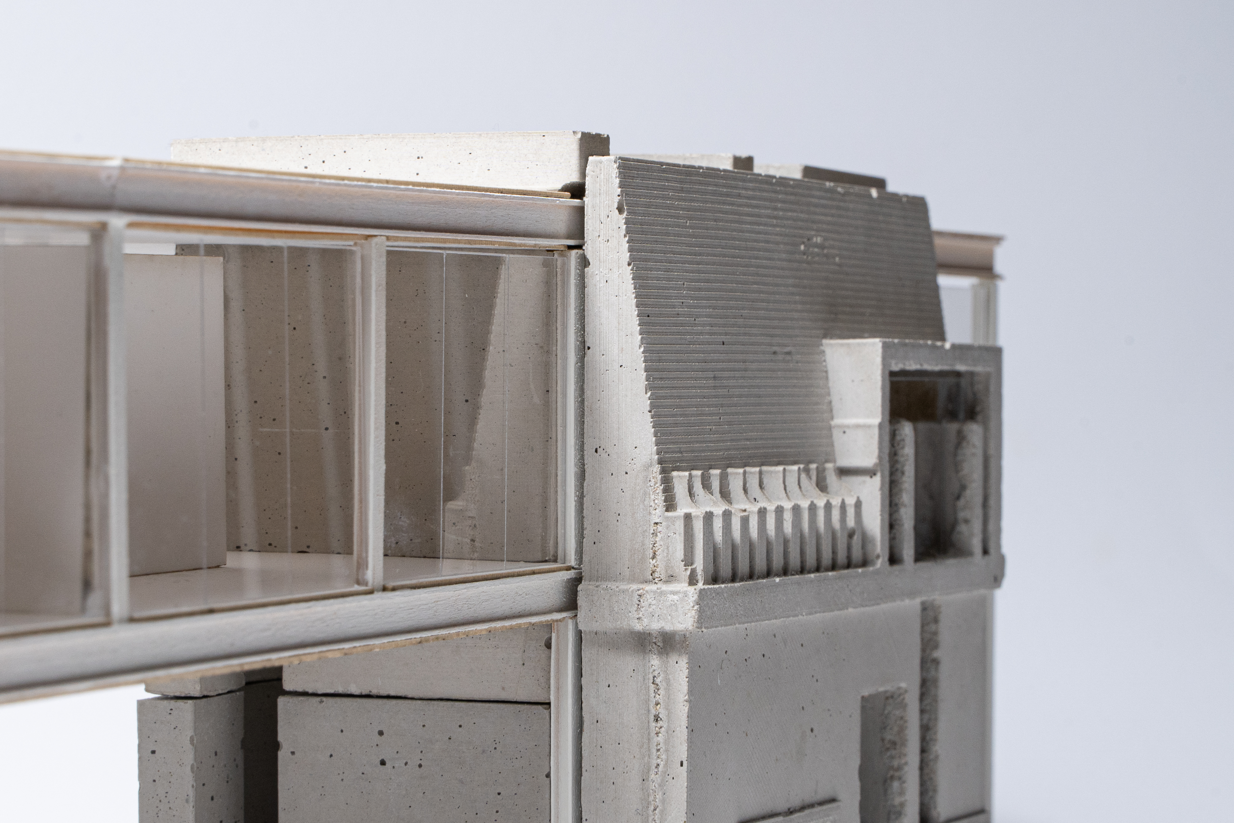 two portions facade in cast concrete which become solid,